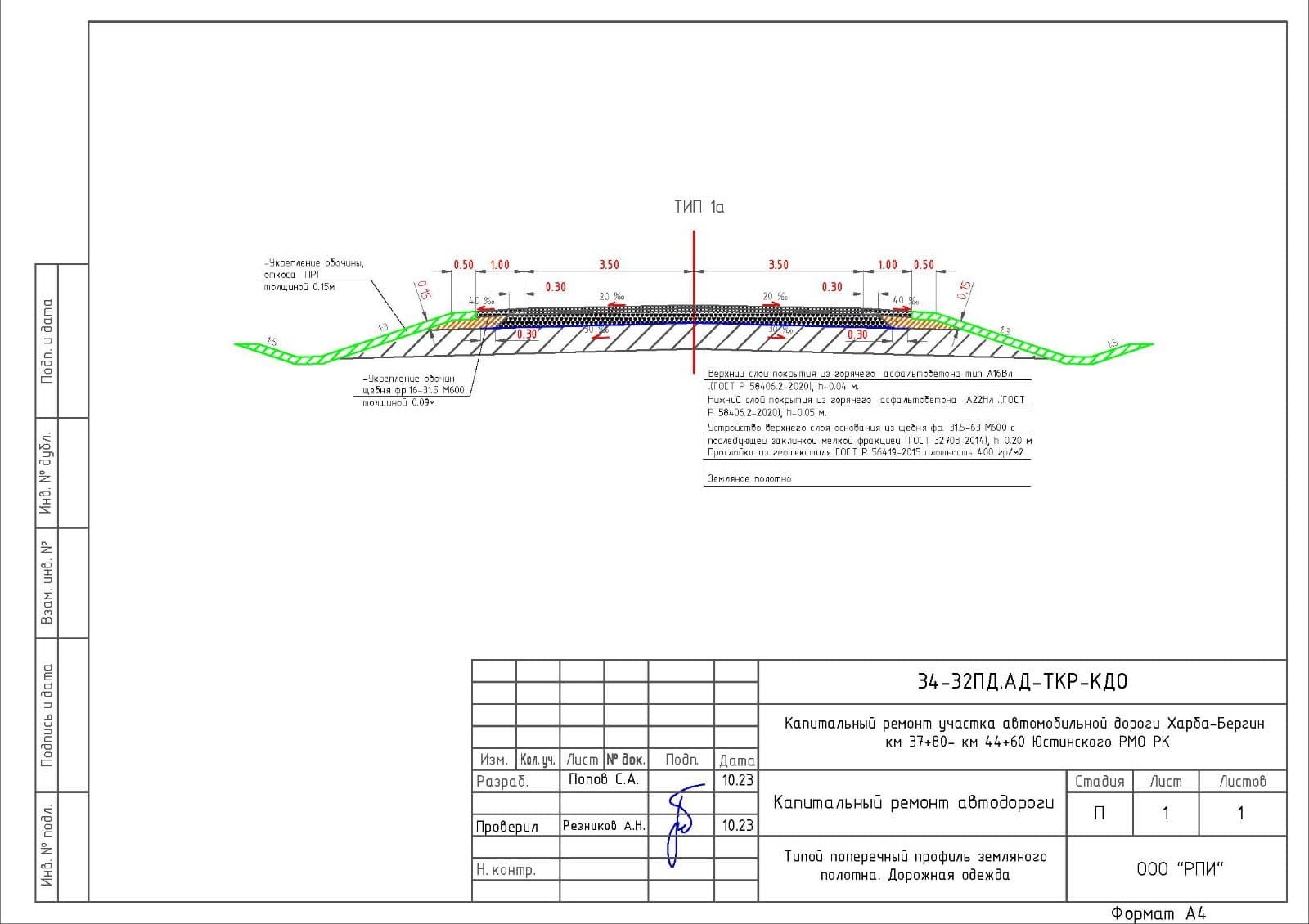 Разработка проектно-сметной документации на: "Капитальный ремонт участка автомобильной дороги Харба-Бергин, км31+100-км37+800 Юстинского РМО РК"